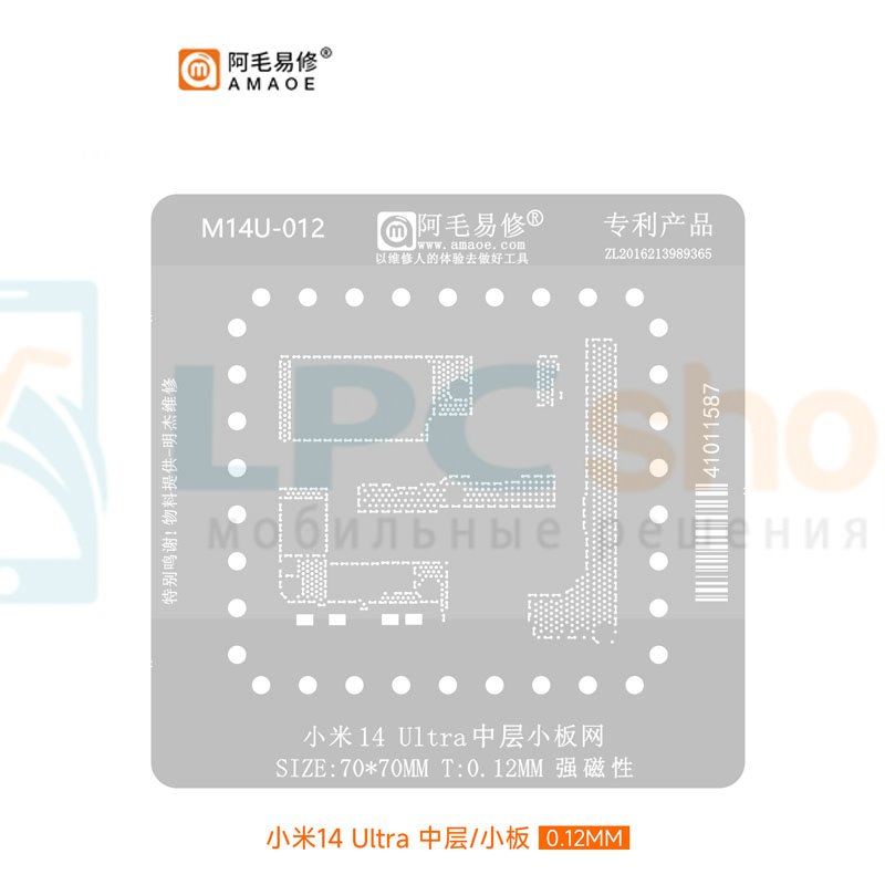 Для покупки AMAOE BGA Трафарет Xiaomi 14 Ultra (M14U-012) для платы 0.12мм средний уровень вы можете связаться с нами: