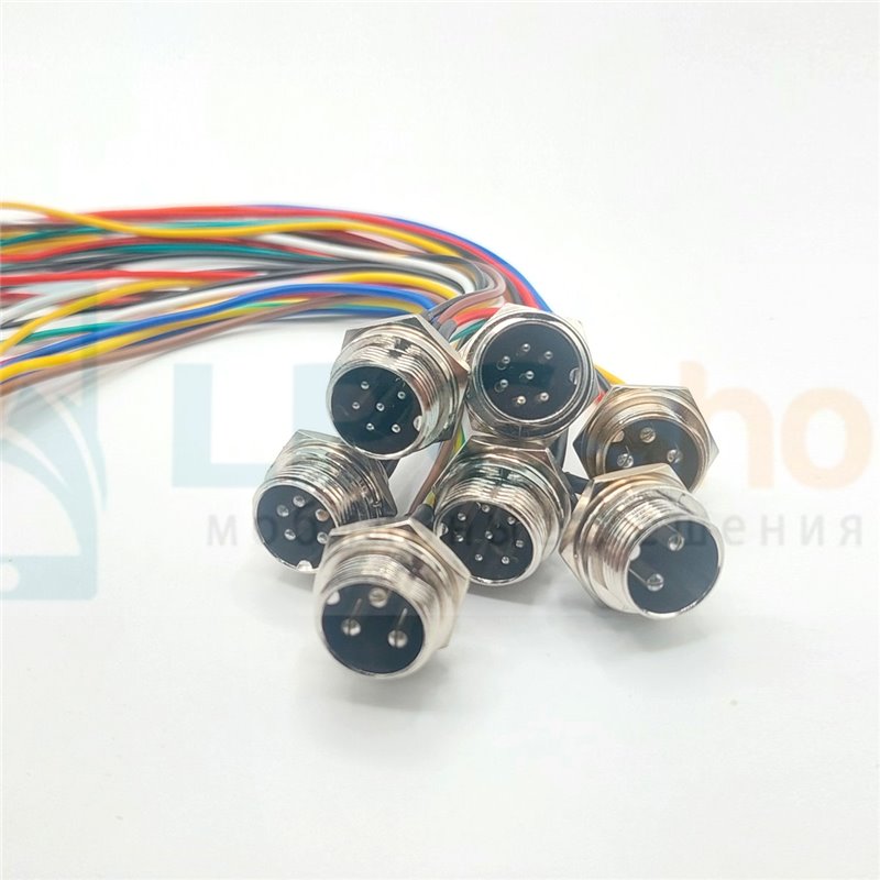 Авиационный разъем GX16 4pin папа с проводом 20см