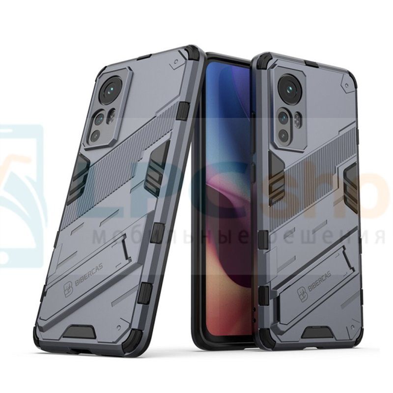 Вы можете купить Чехол - накладка для Xiaomi 12 / 12X / BIBERCAS / с подставкой Серый / Пластиковый / Защитный Из пункта самовывоза в